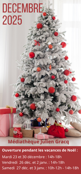 Pendant les vacances de Noël, la médiathèque sera ouverte chaque mardi, vendredi & samedi aux horaires ci-contre.